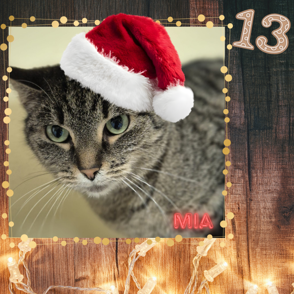 Hinter dem 13. Türchen versteckt sich heute Mia – eine unserer hübschen getigerten Katzenladies mit großen, sanften Augen.