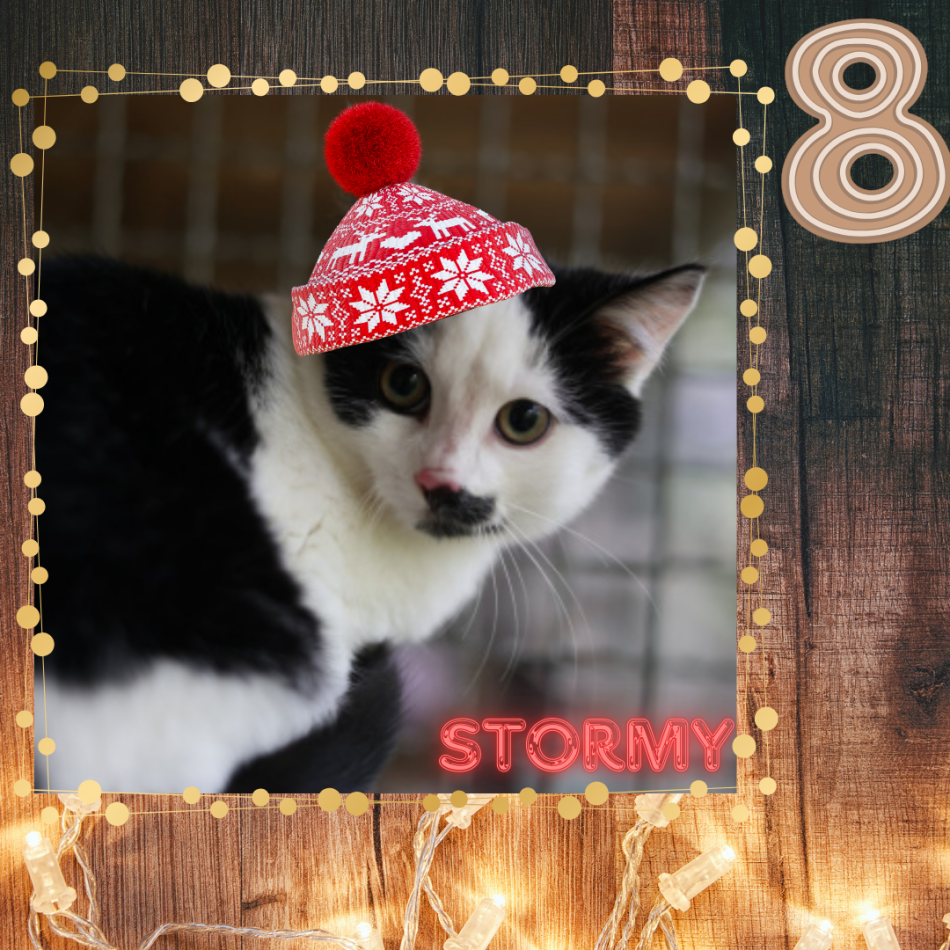 Hinter dem heutigen Türchen versteckt sich Stormy, ein kleiner hübscher Kater, dessen Name zwar ziemlich “stürmisch” klingt – der aber in Wahrheit eher ein riesengroßer kleiner Hasenfuß ist.