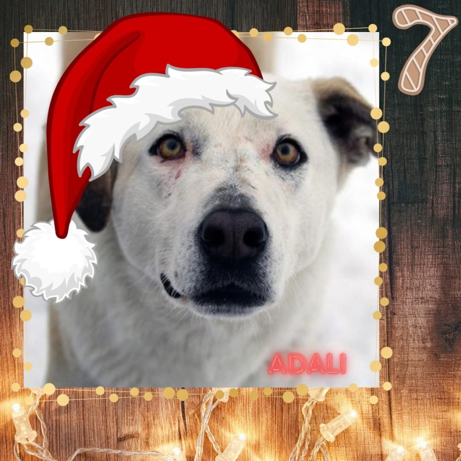 Heute öffnet sich das siebte Türchen – und dahinter steckt Adali, eine beeindruckende, dreijährige Mischlingshündin, die erst seit kurzem bei uns im Tierheim ist.