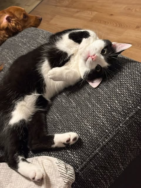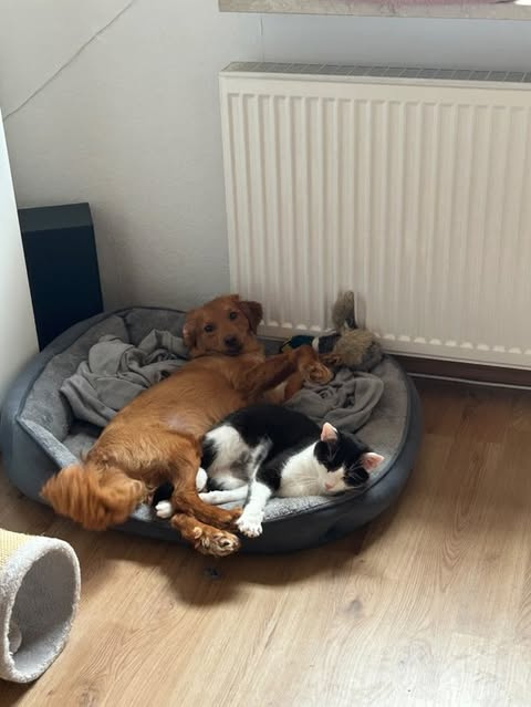 uns beiden geht es richtig gut in unserem neuen Zuhause! Wir haben uns super eingelebt und genießen jeden Tag in vollen Zügen. Am liebsten spielen wir zusammen oder kuscheln – sei es miteinander oder mit unseren neuen Menschen. Leanne und Tobias sind einfach großartig – besser hätte es uns wirklich nicht treffen können! Wir bekommen ganz viel Aufmerksamkeit, dürfen auf dem Sofa und sogar im Bett mitkuscheln (was wir seeehr genießen) und haben eine Menge neuer Spielsachen, die natürlich ausgiebig genutzt werden. Wir fühlen uns hier rundum wohl und möchten uns nochmal von Herzen bedanken, dass ihr uns den Weg in dieses tolle Zuhause ermöglicht habt!