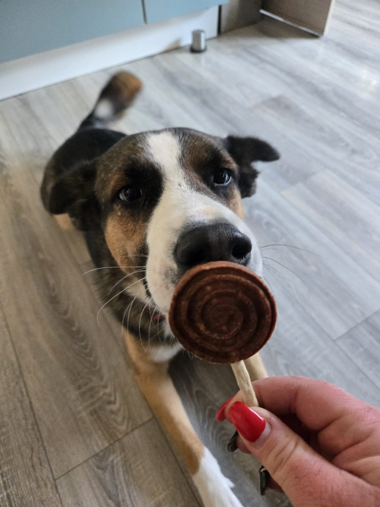 ein Jahr ist vorbei und Dexter geht es prächtig! Er hat mit uns sein erstes Weihnachten/Silvester gefeiert, ist das erste Mal mit dem Wohnwagen im Urlaub gewesen und hat dort den Hundestrand kräftig genutzt. Er kommt super mit den Katzen und Jonny zurecht. Dex ist unser Glück und wir wollen ihn nicht mehr missen!!!