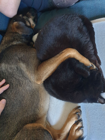 Ich liebe lange Spaziergänge im Wald und auf den Feldern. Und Kuscheln. Ganz viel Kuscheln. Wenn ich mal einen meiner Hundkumpels treffe, komme ich richtig aus mir heraus und freue mich über ausgiebige Rennspiele.