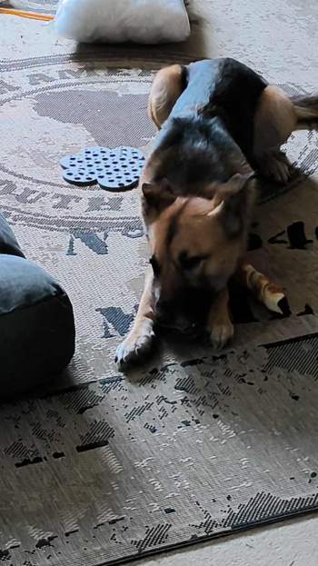 “2024 lernte ich Sky im Tierheim kennen und wir sind spazieren gegangen. Bei den zweiten Besuch haben wir zusammen in ihren Raum gesessen und uns weiter kennengelernt. Wir haben dann einen schönen Tag verbracht. Und als ich Sky abholen durfte, war ich so aufgeregt! Sky ist eine wunderbare Freundin, wird von allen geliebt und ihr geht es sehr gut!”