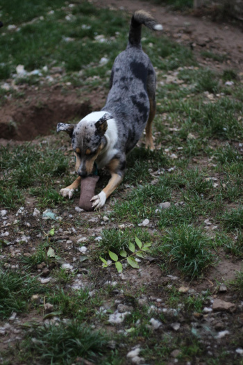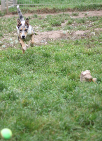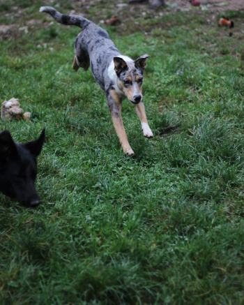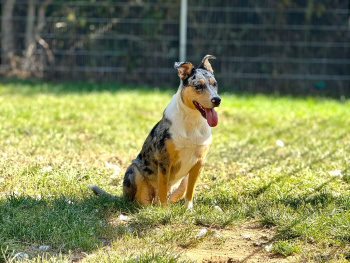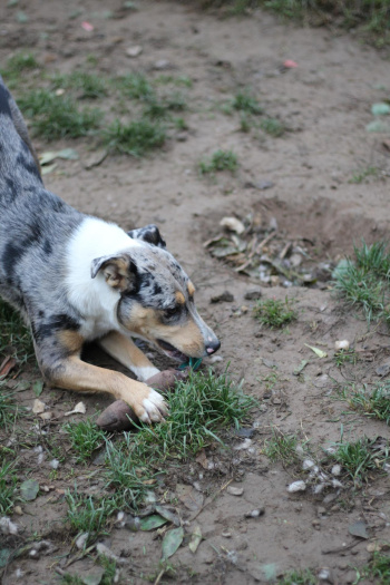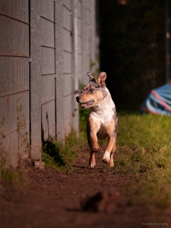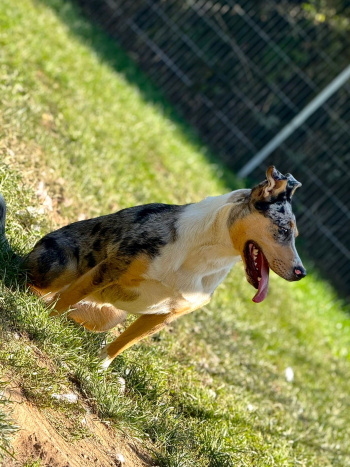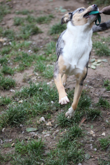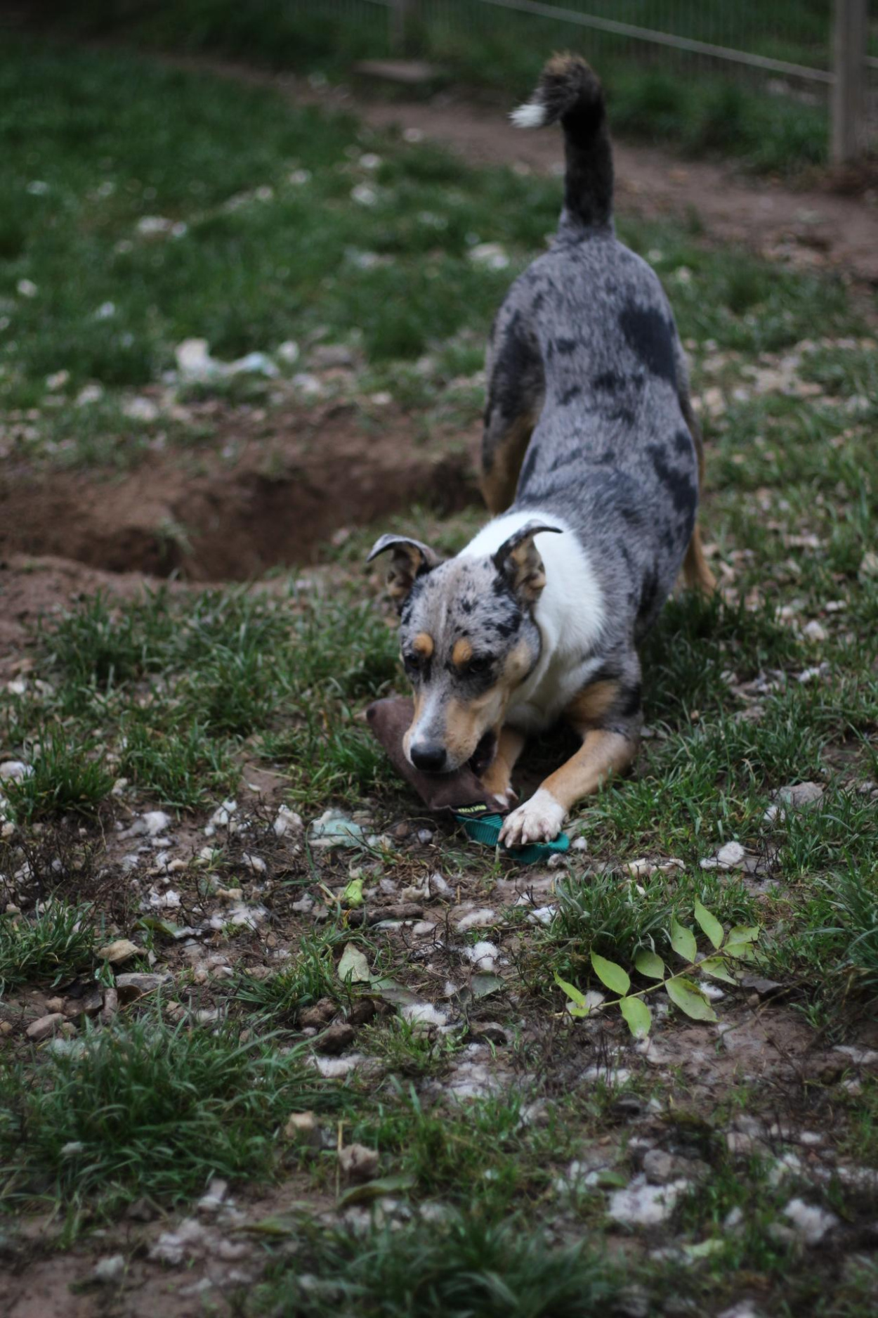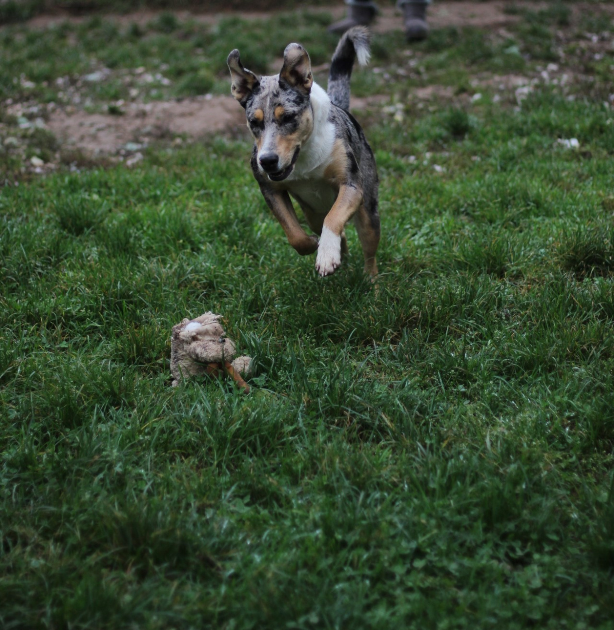 Gerade mal etwas über ein zartes Jahr alt, mit ordentlich Pfeffer in meinem Flauschärschchen und mit einem Turboantrieb ausgestattet, quasi ein richtiger Teenager im Hundeformat. Die offizielle und politisch korrekte Bezeichnung wäre wahrscheinlich „Australian Shepherd-Mix“, aber in Wahrheit bedeutet es: Eingebauter Duracell-Hase!