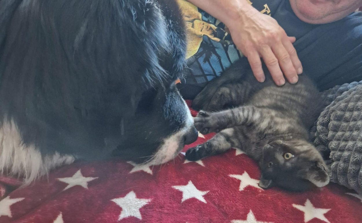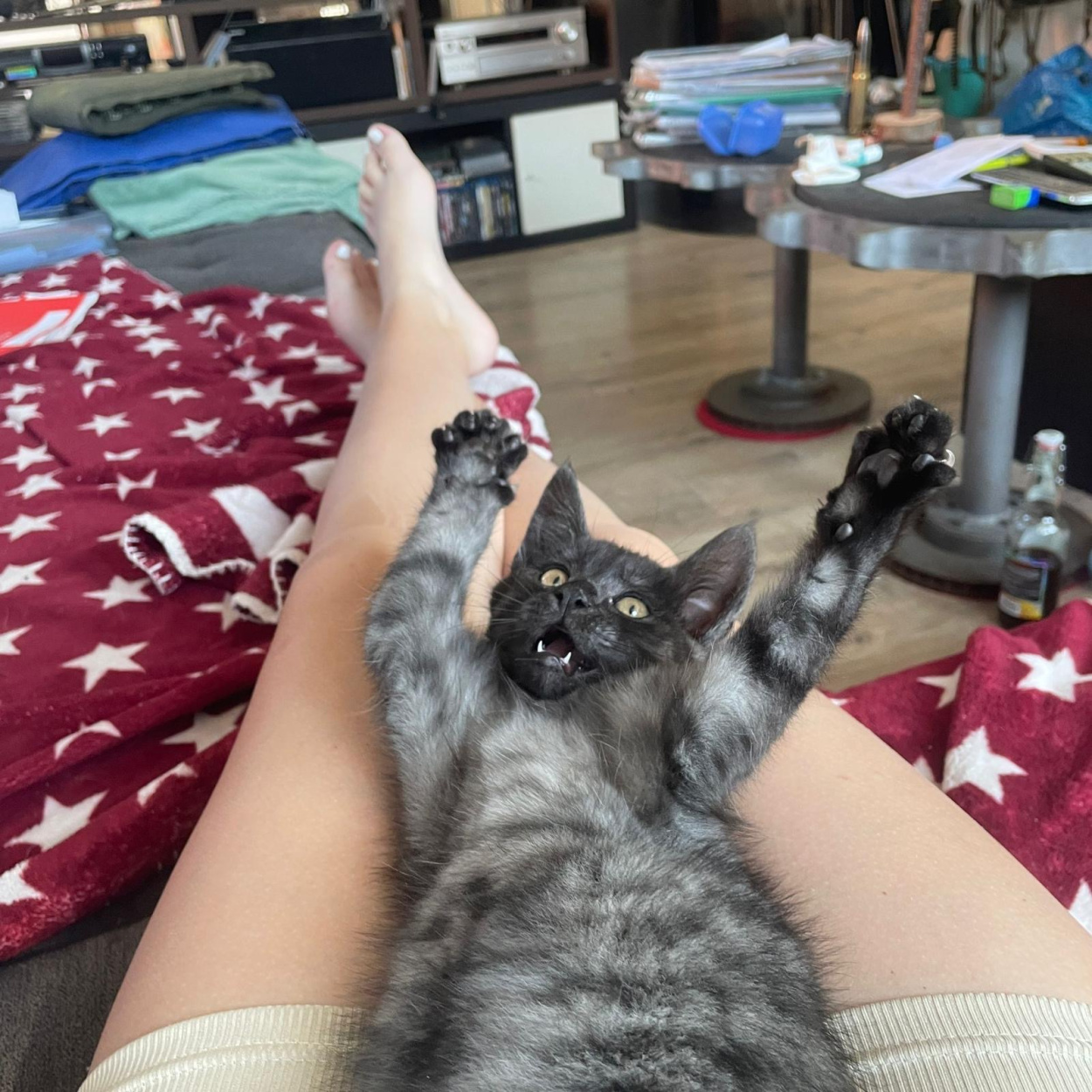 “Hallo, Pearl ist jetzt schon fast 8 Wochen bei uns und fühlt sich pudelwohl! Sie versteht sich mit unserem Hund Flynn sowie mit unseren Kater Nuka. Die zwei flitzen durch die Wohnung und spielen so süß miteinander. Pearl haben wir in Lou umgetauft und wir sind so glücklich, dass sie bei uns ist. Sie hat einen riesen Appetit, frisst gut und wird immer größer. :-)