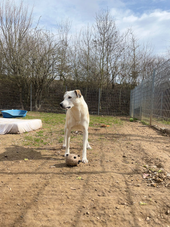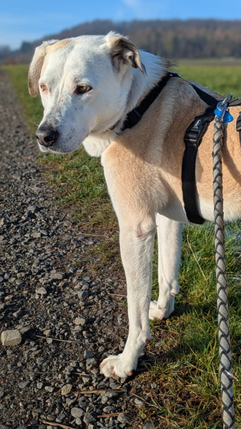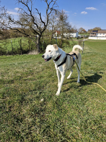 Ich bin eine liebe, etwas über drei Jahre alte Mischlingshündin auf der Suche nach einem kuscheligen Körbchen, einfach einem Platz, wo ich für immer bleiben kann. Auch wenn ich auf dem Foto hier von weitem (und mit ganz viel Fantasie) ein klitzekleines bisschen aussehe wie ein behäbiger Eisbär, kann ich nur sagen: Lasst euch nicht täuschen! So behäbig bin ich nämlich gar nicht – mein Flausch-Ärschchen hat ordentlich Temperament! Draußen bin ich flott unterwegs, schnüffle mich neugierig durchs Leben und entdecke gern Neues. Gut, ich gebe zu: In unbekannten Situationen bin ich manchmal eher etwas skeptisch. Ich beobachte erstmal alles in Ruhe, bevor ich richtig durchstarte. Aber sind wir doch mal ehrlich: Mut wächst bekanntlich mit der richtigen Begleitung!