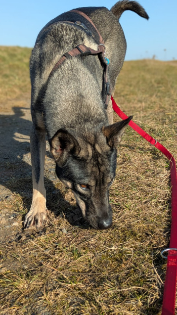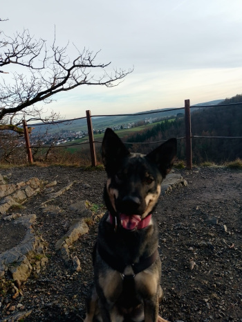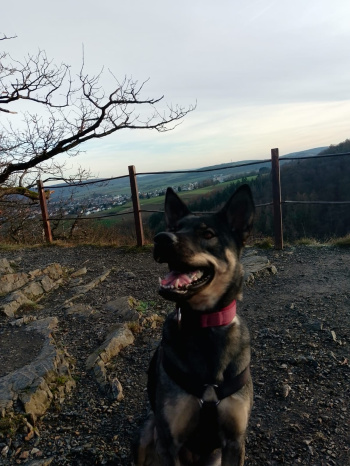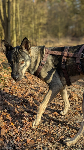 Ansonsten bin ein sportliches Mädel mit richtig Power in den Pfoten – wandern, lange Spaziergänge, durch den Wald streifen? Auf jeden Fall! Mit mir bekommst du ordentlich Bewegung, da kannst du sicher sein. Meine Fitnessuhr meldet täglich: 12.000 Schnüffelschritte – mindestens. Wenn du also lieber den ganzen Tag auf dem Sofa chillst und Netflix schaust, wird nix aus uns beiden. Ausruhen können wir uns gerne dann nach dem Sportprogramm. Deal? Mit anderen Hunden komme ich übrigens auch super klar. Ich liebe es zu spielen, zu toben, zu rennen - naja, Action halt!