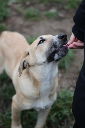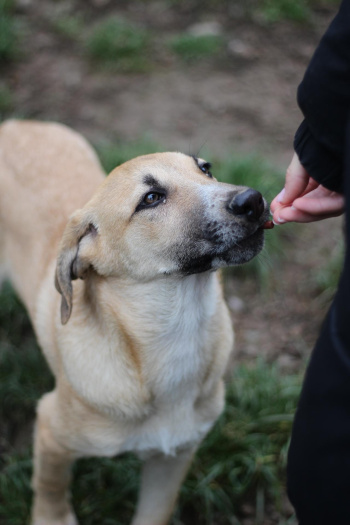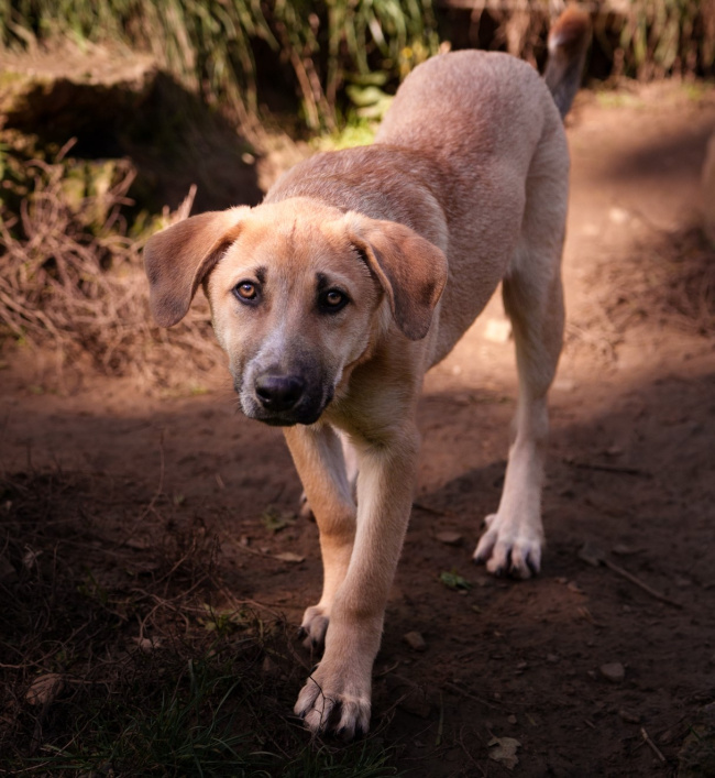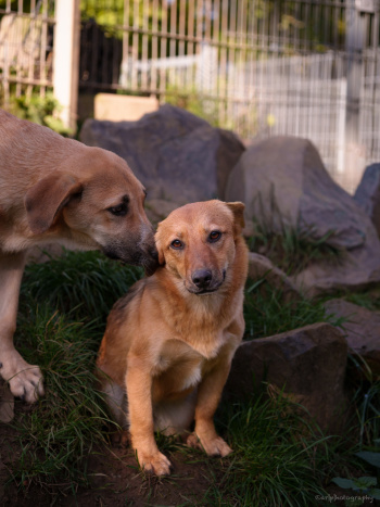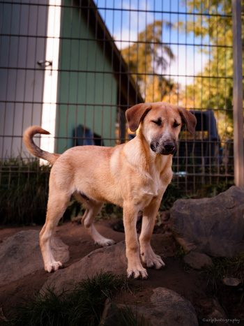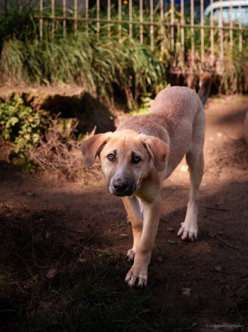 Obwohl ich noch nicht mal ein halbes Jahr alt bin, habe ich also schon einiges erlebt und auch vieles gesehen. Vielleicht liegt es daran, dass ich kein Draufgänger bin - eher ein ruhiger Typ. Ich bin zwar tief drin sehr neugierig, aber ich beobachte lieber (ja, manchmal auch mit einem etwas skeptischen Blick) und denke immer erstmal drüber nach, ob es sich überhaupt lohnt, dreckige Pfoten zu riskieren. Manche hier finden sogar, dass ich, im Vergleich zu anderen in meinem Alter, schon vergleichsweise “erwachsen” wirke. Naja, sagen wir mal so: Ich brauche halt nicht ständig Rambazamba und Spektakel, auch wenn natürlich trotzdem ab und zu meine welpigen Momente habe, in denen ich einfach gerne spiele oder mit den anderen draußen im Auslauf tobe. Eine gute Mischung aus Chillen und Spaß ist genau mein Ding! Deshalb bin ich auch echt froh, dass ich hier in Wildungen die Chance auf ein richtiges Leben bekommen habe: Hier darf ich Schritt für Schritt langsam ankommen, das ist genau das, was ich brauche. Menschen, die mich ruhig ansprechen und keinen Stress ausstrahlen, haben sofort einen Stein bei mir im Napf!