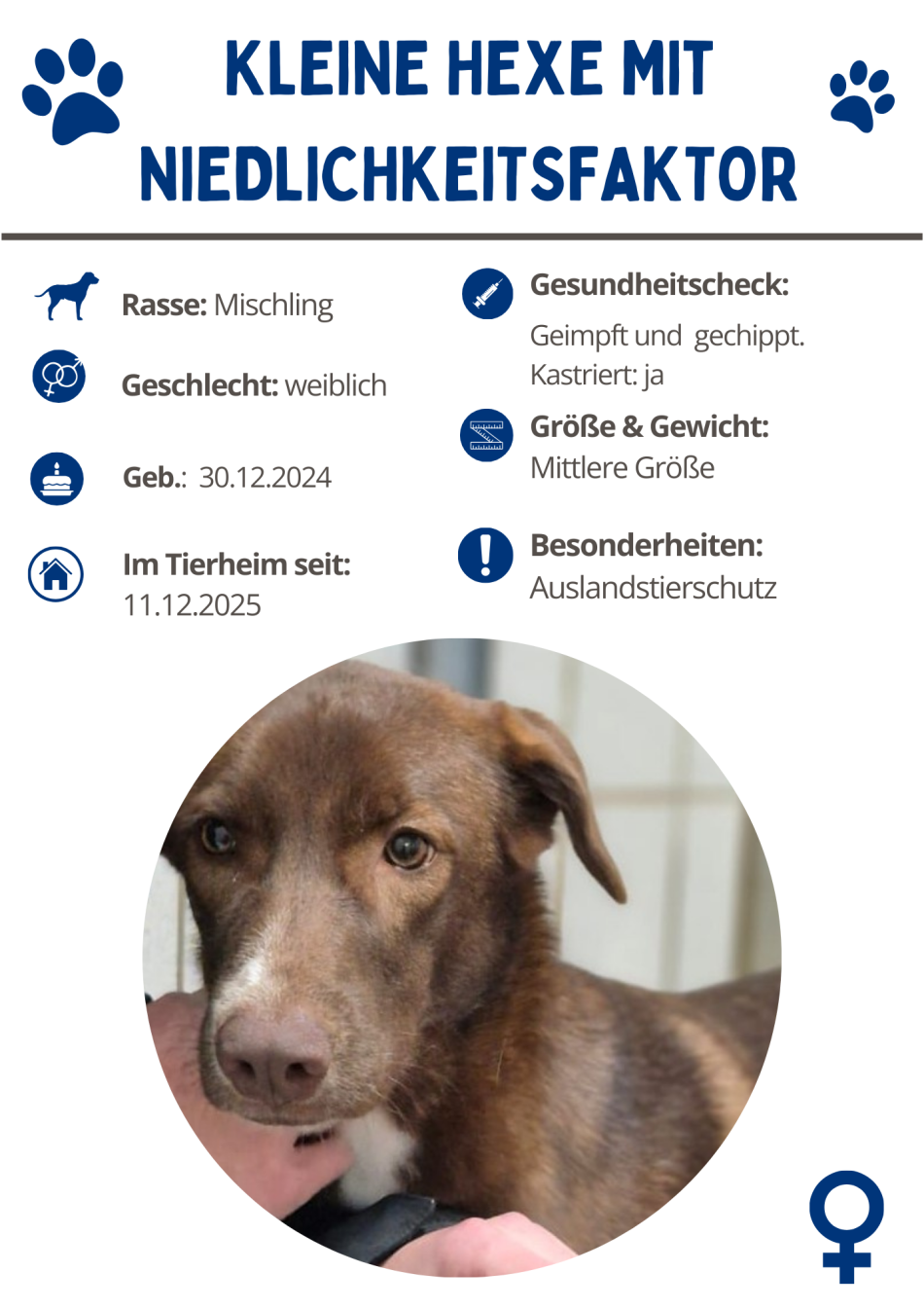 Mein Leben begann alles in allem etwas holprig: Im Alter von etwa einem Monat wurde ich schlapp und verschnupft irgendwo draußen aufgelesen. Aber keine Sorge – ich habe mich schnell berappelt. Kleine Hexen sind eben zäh… ;-) Heute bin ich gesund, munter und sowas von bereit, die Welt (oder zumindest vorerst das Tierheim) zu erobern!