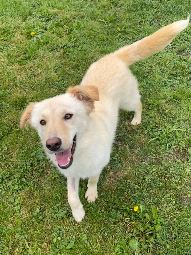 Ansonsten reagiert er gut auf Zuruf und antrainierte Befehle, hat einen großen Bewegungsdrang und ist noch verspielt.